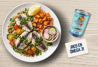 Sardinas frescas y naturales, llenas de nutrientes para tu día a día.